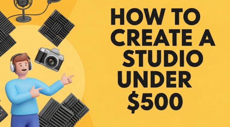 To create a budget-friendly studio space, choose a quiet room with minimal background noise, use DIY acoustic panels, and invest in versatile equipment that meets multiple needs.