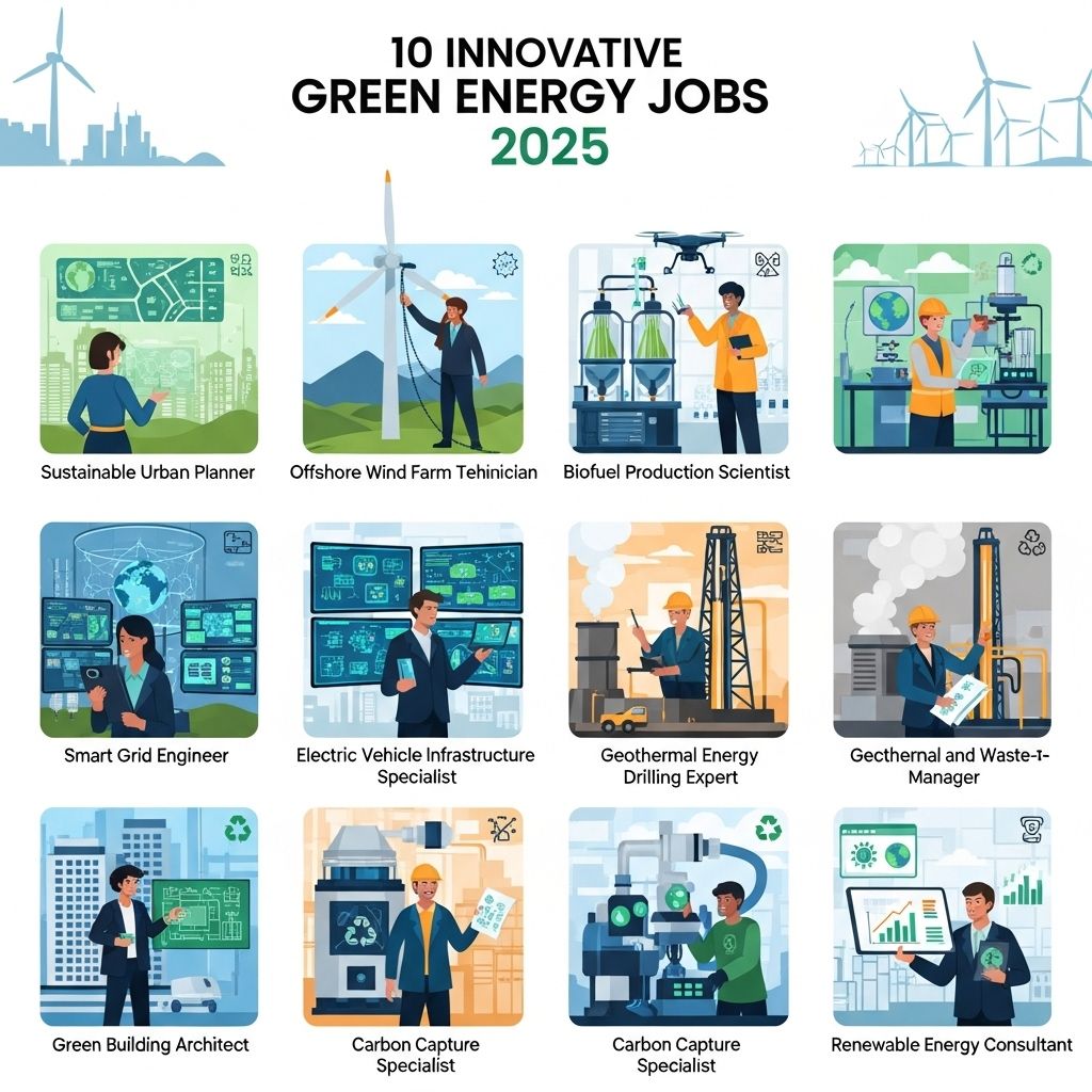 In 2025, innovative green energy jobs may include roles such as renewable energy consultants, solar energy technicians, wind farm developers, energy storage specialists, and sustainable transportation planners.